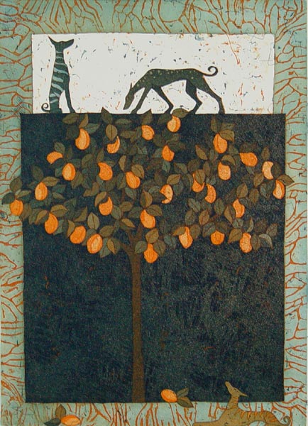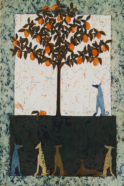 - Appelsiinipuun vartijat - 2003 viivasyövytys / akvatinta 39 x 27 cm |
