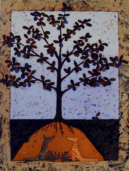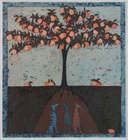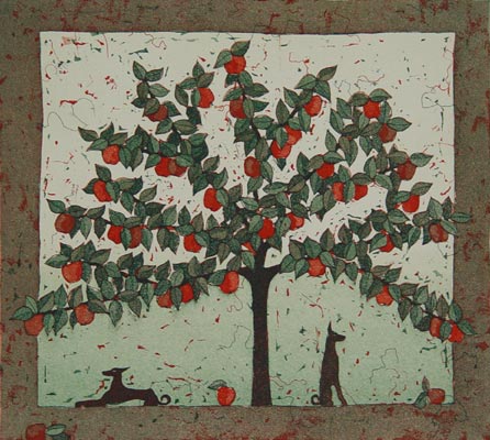 - Paratiisiomenapuun vartijat - 2002 viivasyövytys / akvatinta 23,5 x 18 cm |