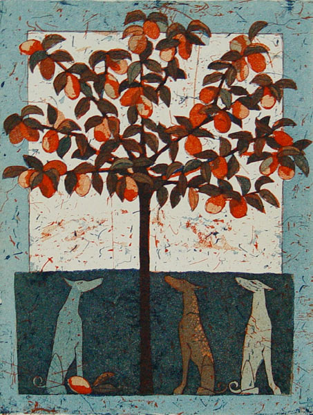 - Aprikoosipuun vartijat - 2003 viivasyövytys / akvatinta 35 X 25,5 cm |