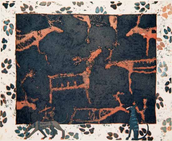 - Matkalla menneeseen - 1997 viivasyövytys / akvatinta 20,5 X 38,5 cm |